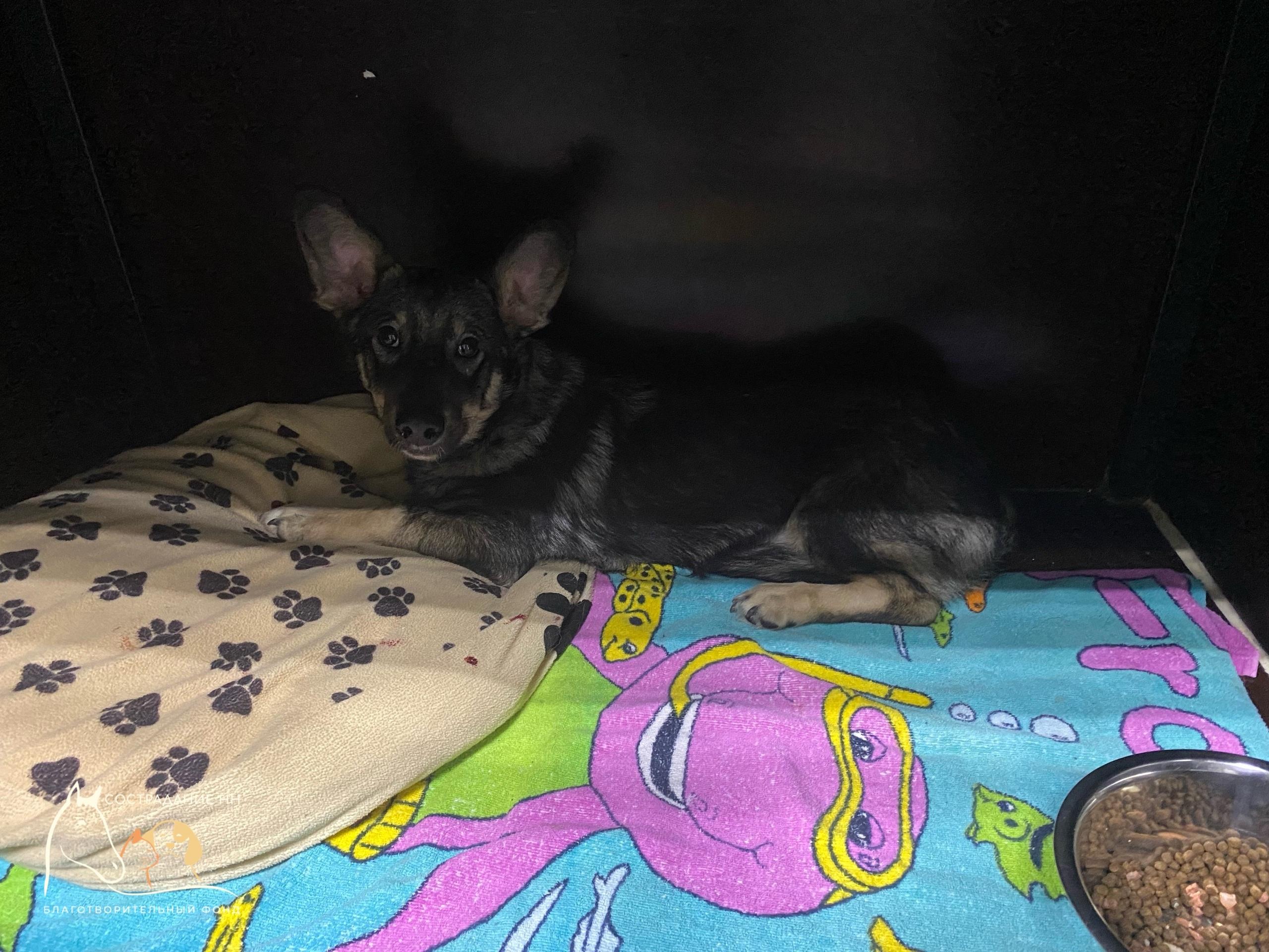 Волонтёры увидели не агрессивное, как утверждал мужчина, а крайне запуганное создание с «самыми большими ушами и добрыми глазами». Щенка, которого назвали Коржиком, срочно отвезли в ветеринарную клинику, где диагностировали перелом лапы. Ему провели операцию и установили спицы, которые должны снять через месяц.