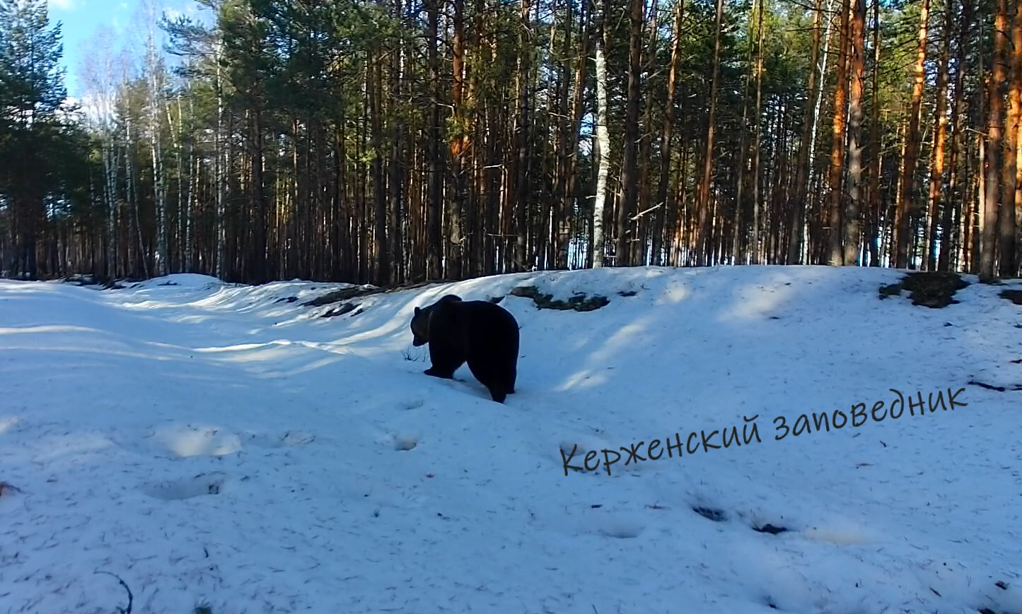 Проснувшийся медведь попал в объектив фотоловушки в Керженском заповеднике