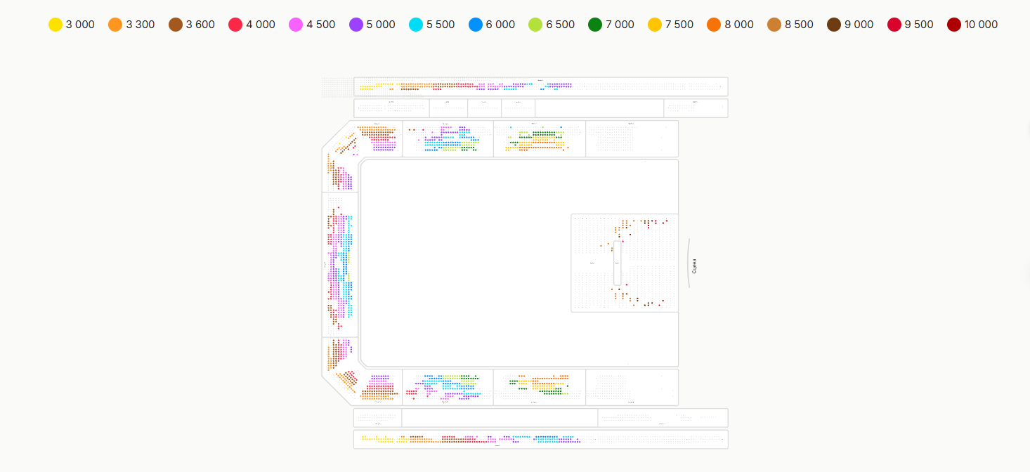 По информации билетных операторов, наибольшим спросом пользуются места у сцены стоимостью от 8 до 10 тысяч рублей. Минимальная цена билета составляет 3 тысячи рублей.