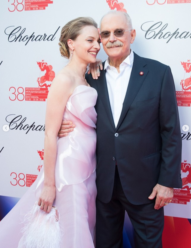 Екатерина Вилкова на красной дорожке рядом с Никитой Михалковым.