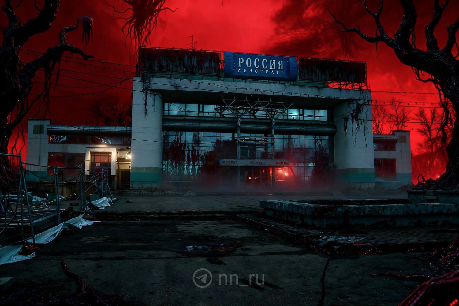Нижегородский кинотеатр «Россия», изображённый в стилистике сериала «Очень странные дела».