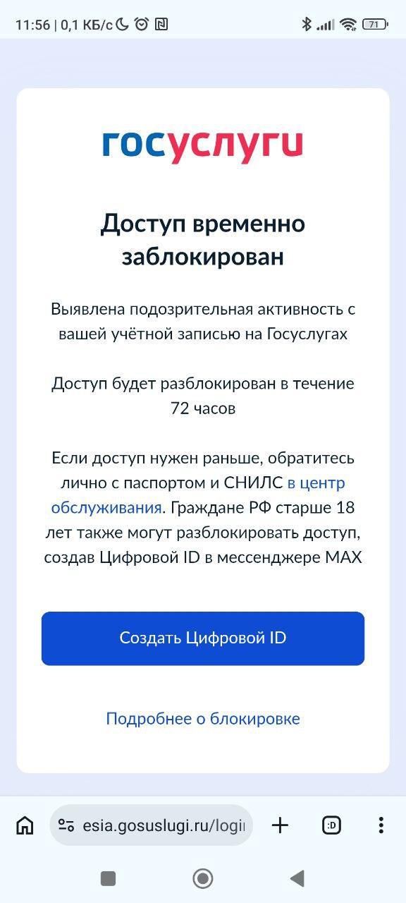 Жители Нижнего Новгорода продолжают сталкиваться с блокировкой учетных записей на портале Госуслуги. Аккаунты ограничивают на 72 часа по причине «подозрительной активности». Для досрочного восстановления доступа система предлагает создать цифровой идентификатор в мессенджере МАХ, однако у многих этот процесс не удается завершить.