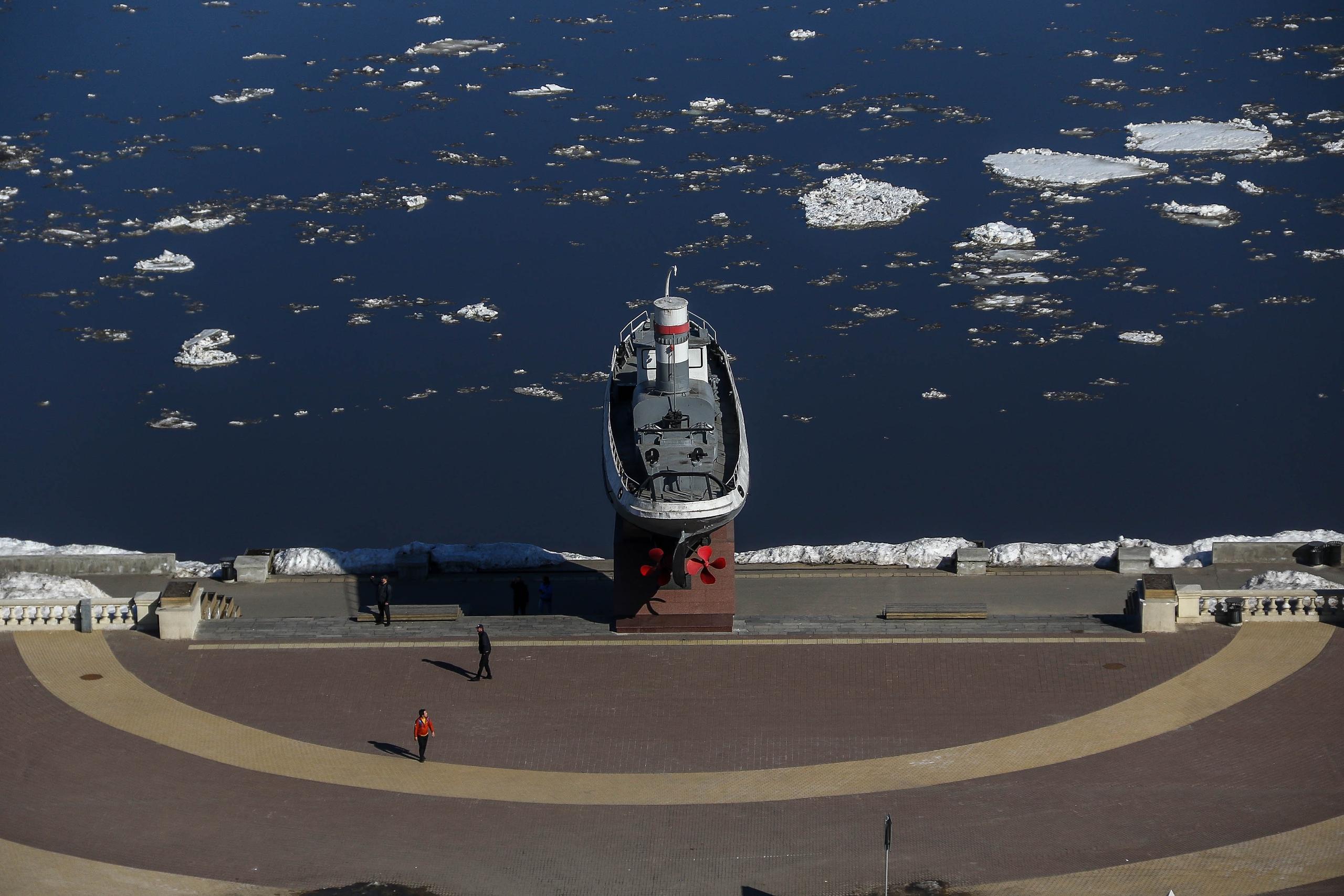 Зима уступает место весне, и лед покидает реки Нижнего Новгорода.