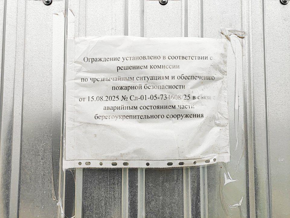 Забор, установленный на набережной из-за аварийного состояния берегоукрепительных сооружений