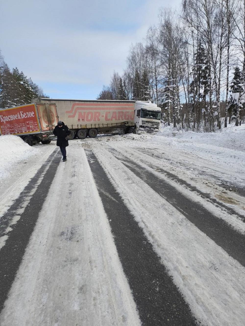 По сообщениям очевидцев в социальных сетях, длина образовавшегося затора составила около пяти километров. Официальные данные о подробностях происшествия и возможных пострадавших пока не опубликованы. Известно, что вместе с фурой в сугроб на обочину вынесло еще один автомобиль — небольшой грузовик, принадлежащий торговой компании.