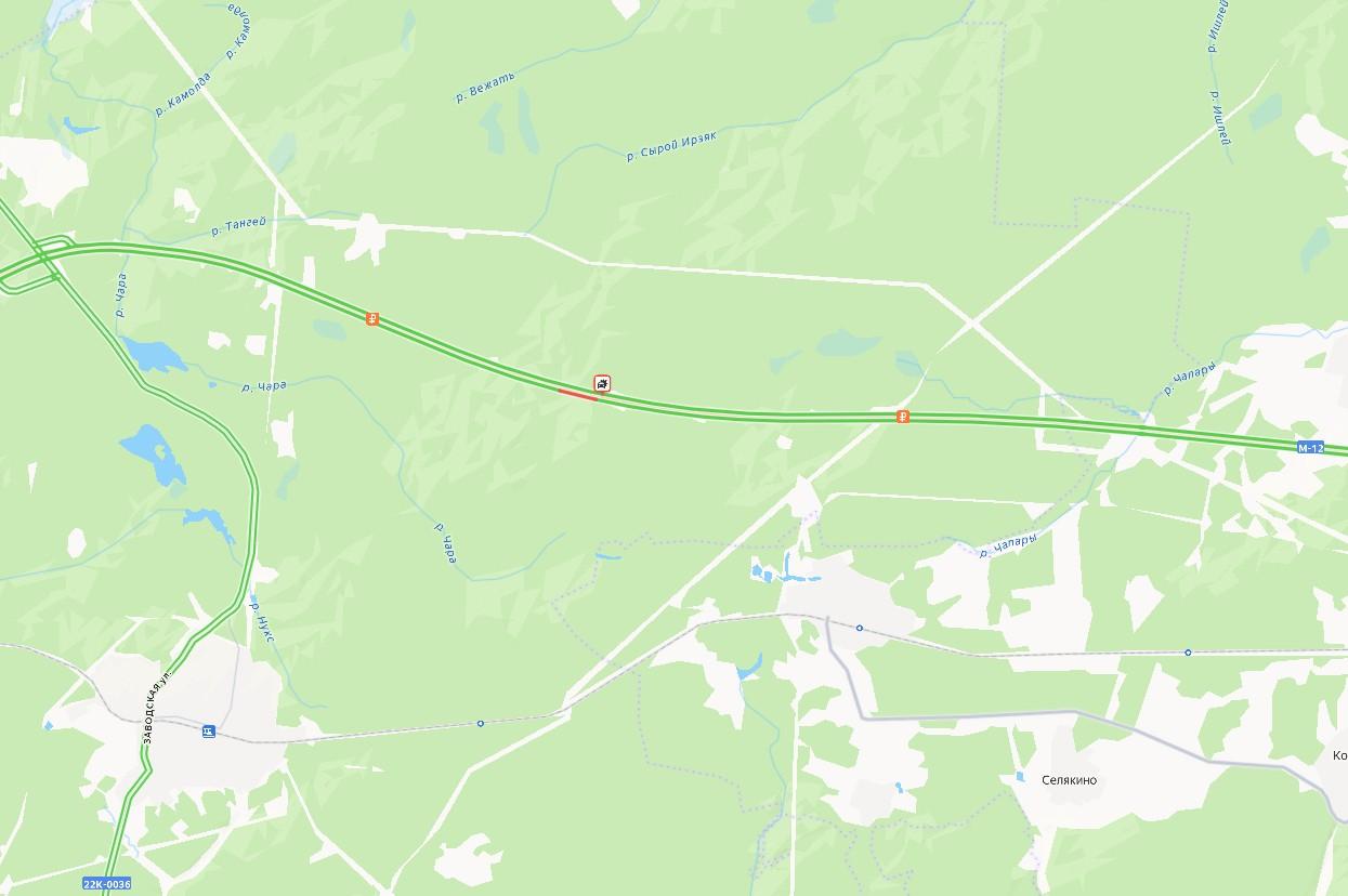 Очевидцы сообщили о масштабном дорожно-транспортном происшествии на платной автомагистрали М-12 в Нижегородской области. Инцидент произошел на участке дороги недалеко от поселка Мухтолово, на полосе, ведущей в сторону Казани.
