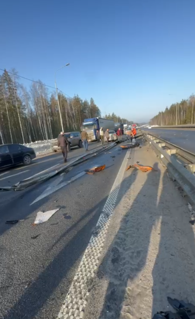 Массовая авария на М-12: Chevrolet намотан на отбойник