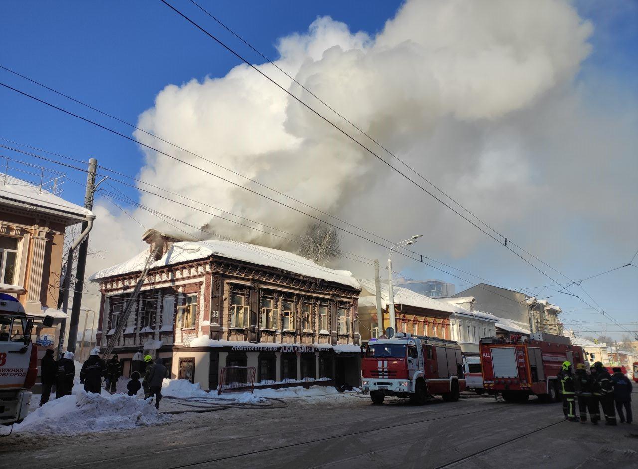 В центре Нижнего Новгорода произошел пожар в историческом доме купца Каменева. По предварительной информации, источником огня могла стать соседняя бытовка.