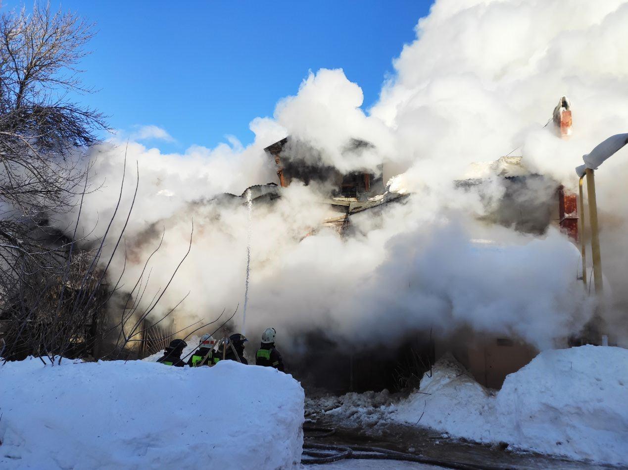 Возгорание в доме купца Каменева могло начаться с бытовки, где хранилось 100 литров бензина. Огонь также перекинулся на жилой корпус и пристрой.