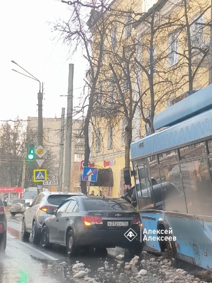 Блогер Алексей Алексеев, ссылаясь на свидетельства местных жителей, сообщил, что в Дзержинске троллейбус съехал с проезжей части и врезался в сугроб, разрушив при этом несколько секций забора.