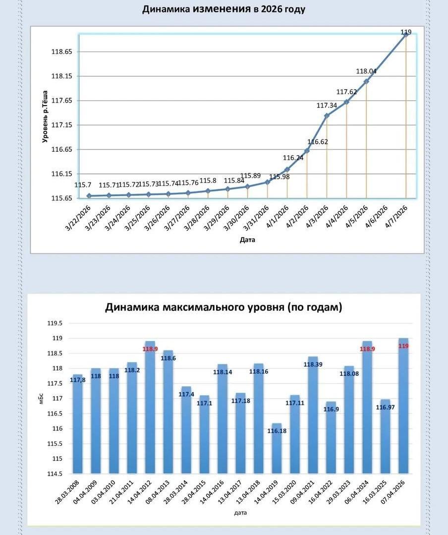 Глава округа Александр Щелоков сообщил, что вода поднялась до отметки 119 мБС. Этот показатель превысил пиковые значения 2012 и 2024 годов, когда уровень составлял 118,9 мБС. Высокие подъёмы также фиксировались в 2013, 2018 и 2021 годах. По словам чиновника, критических ситуаций на данный момент нет.