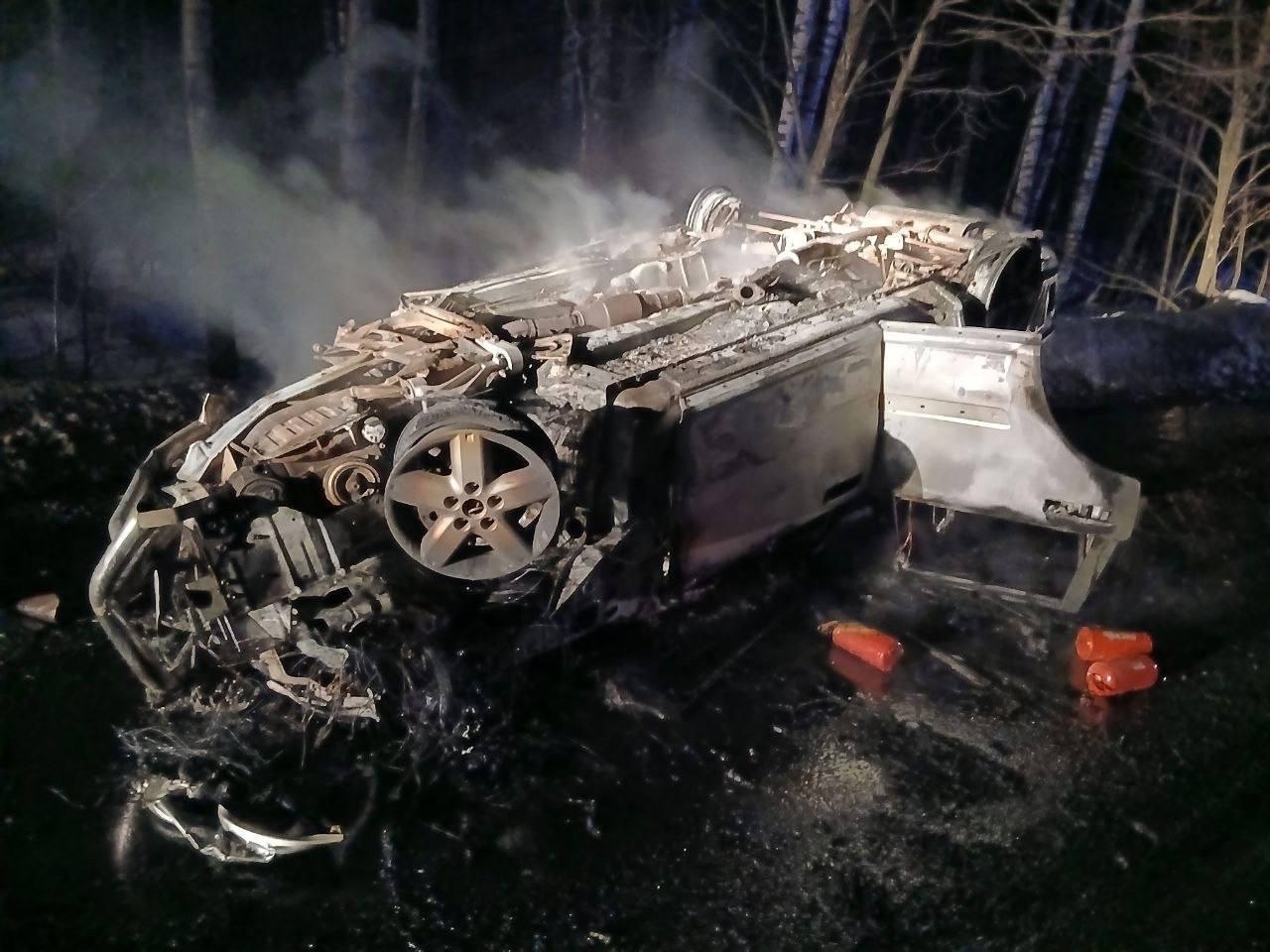 Последствия лобового столкновения и возгорания автомобиля