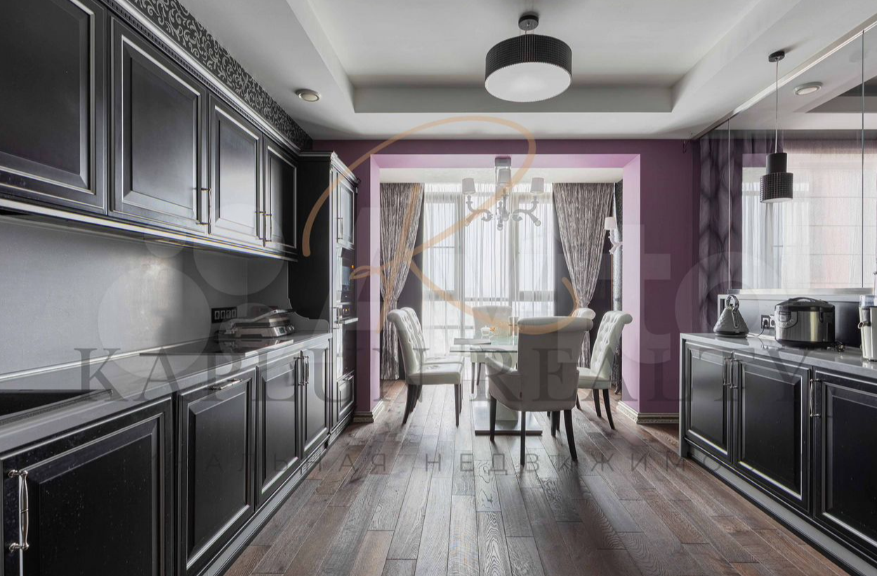 Квартира находится по адресу: Верхне-Волжская набережная, дом 10, корпус 1. Площадь только кухни здесь сравнима с типичной однокомнатной квартирой, а общая площадь составляет 172,2 квадратных метра. Из окон открывается великолепный вид на набережную и просторы Волги.