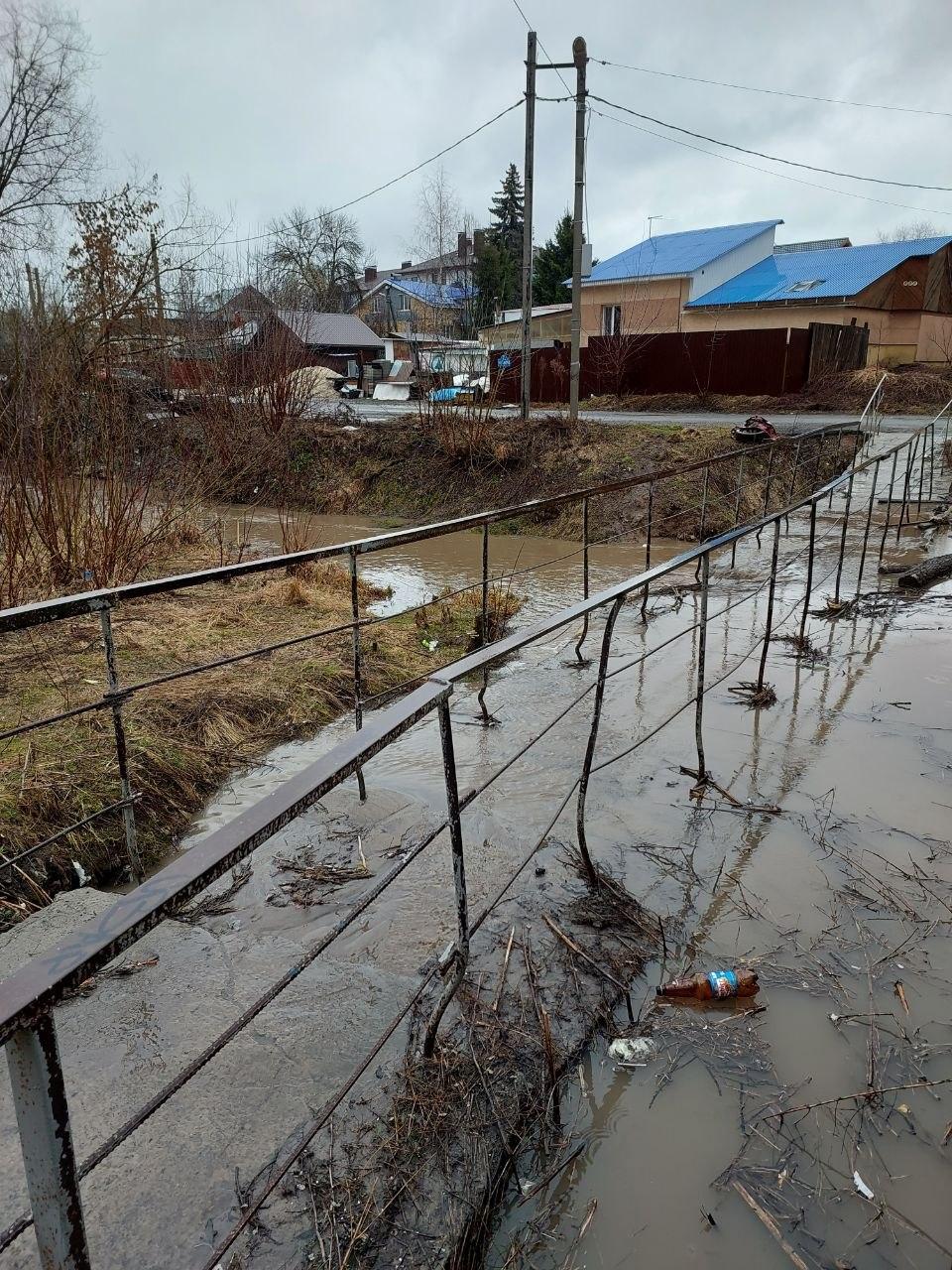 По информации от жителей, водой также затопило дороги в микрорайоне «Слобода Подновье». Старый мост около улицы Гаражной полностью скрылся под водой.