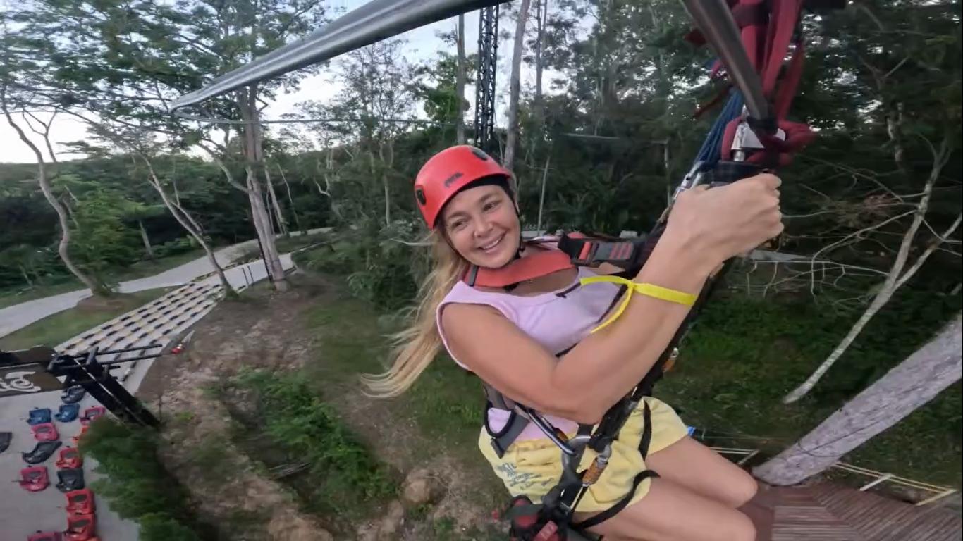 Актриса запечатлела момент катания на экстремальном аттракционе — зиплайне.